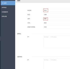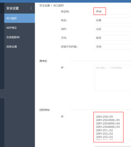 4、 因为ACL规则里,允许的优先级高于阻断,所以这两规则就实现了只允许访问国内IPV6 IP地址。
